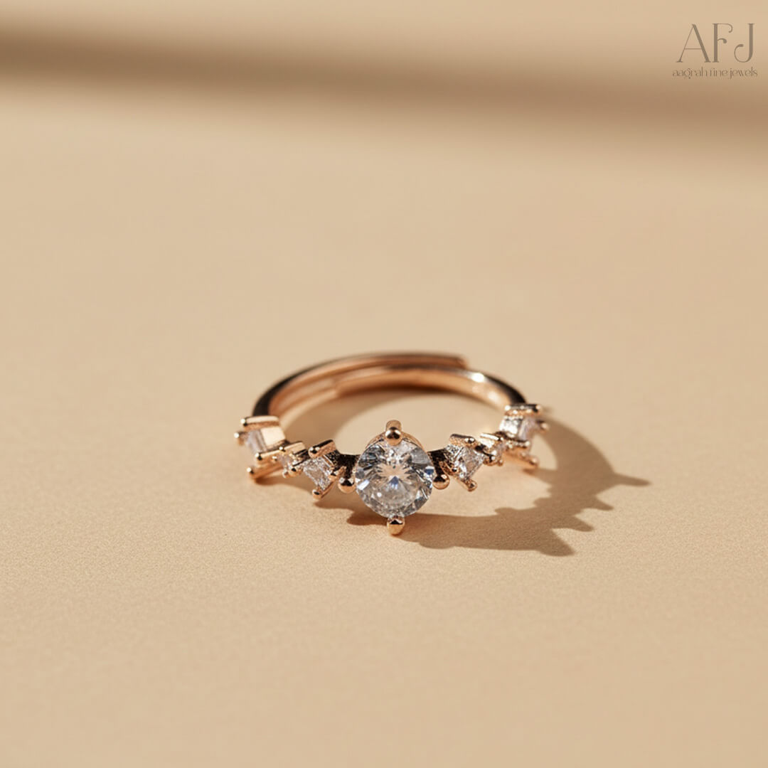 Elevate your look with the Blush Bloom Korean Ring, a stunning blend of delicate charm and contemporary elegance. Crafted with premium rose gold plating and sparkling American diamonds, this ring is designed for women who love minimalist sophistication. The modern open-prong setting enhances its brilliance, making it an effortless statement piece for workwear, casual outings, and special occasions.