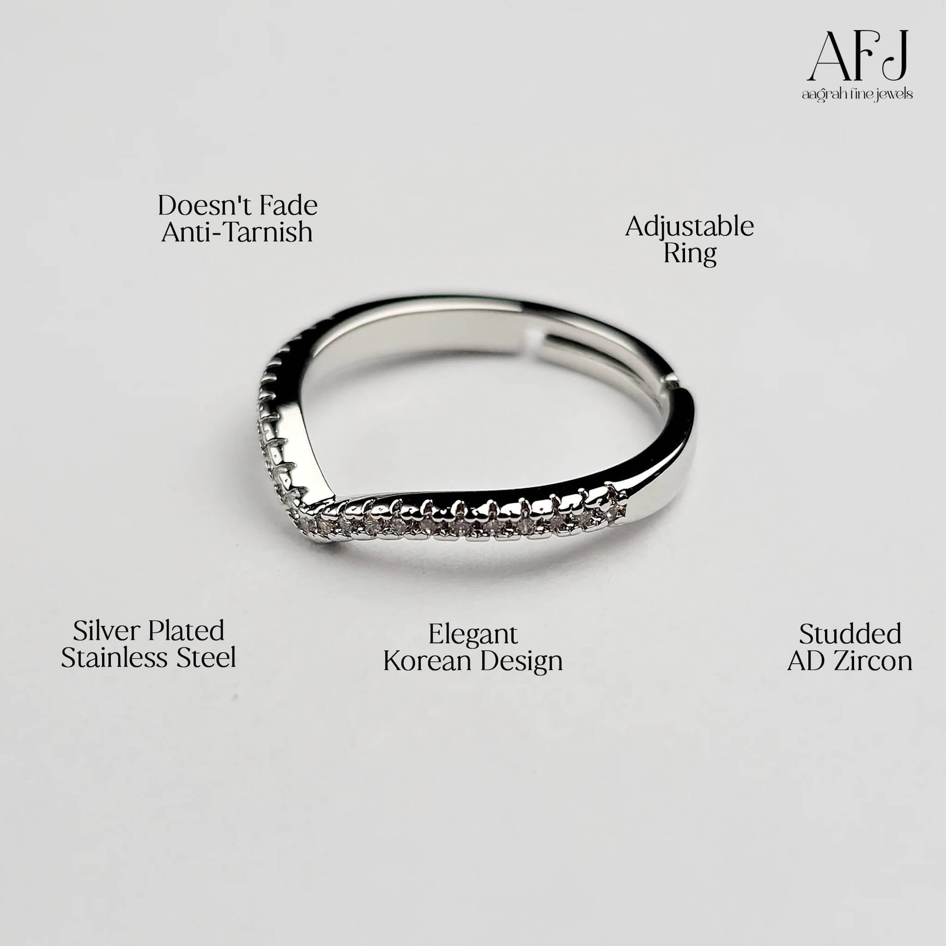 Elevate your everyday elegance with the Celeste V-Shaped Korean Ring, a minimalist yet sophisticated piece designed for modern women. Crafted with premium silver plating and encrusted with high-quality American diamonds, this ring features a sleek V-shape design that adds a touch of effortless charm to any look.