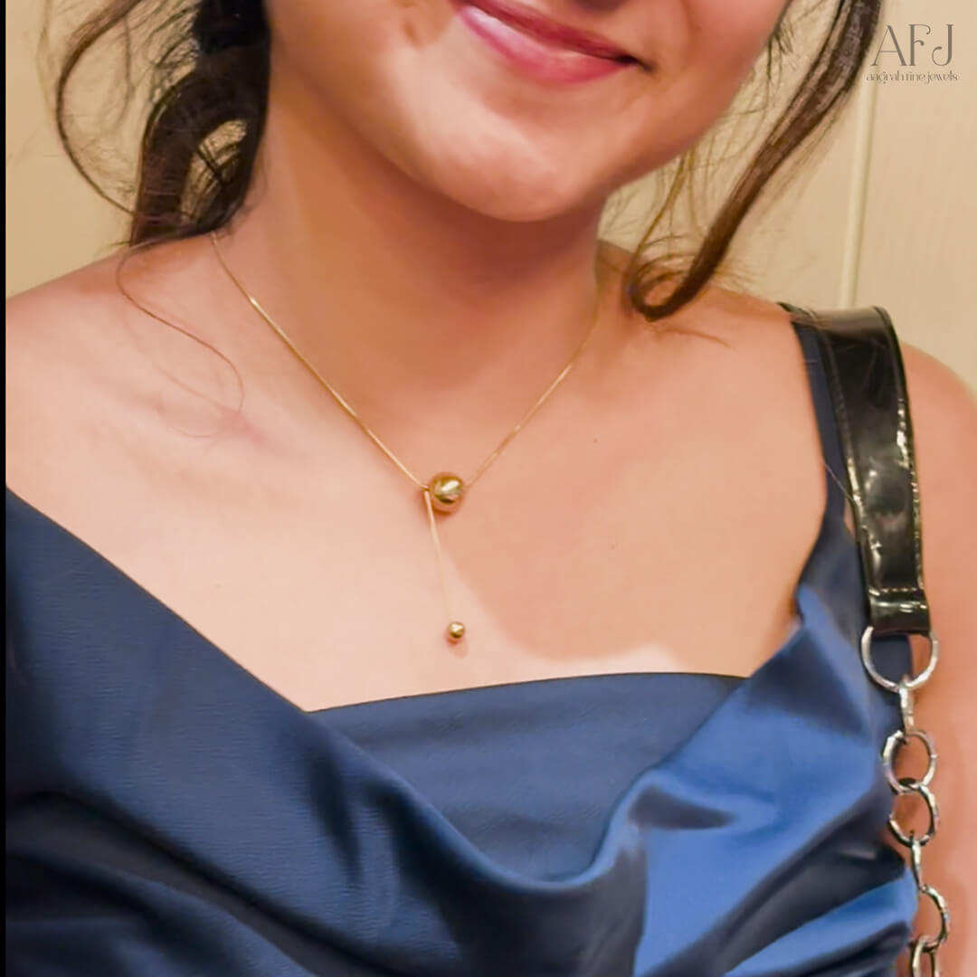 The Luxe Sphere Pendant is a bold yet refined jewelry piece that embraces minimalism with a modern touch. Featuring a sleek snake chain with a statement gold-plated sphere and a delicate drop extension, this pendant is perfect for those who appreciate unique, geometric-inspired accessories.